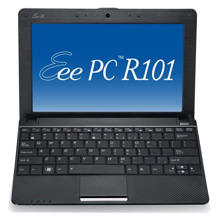 The ASUS Eee PC R101 is ideal for the whole family and guide you into a new era of mobile technology. The ASUS Eee PC R101 netbook is powered by a 1.66GHz Intel Atom N450 processor, a 10.1-inch display with resolution of 1024 x 600 pixel, an Intel integrated graphics, 1GB of RAM, and a 250 GB hard drive 5400 rpm, a card reader SD/MMC, Webcam, Wi-Fi 802.11b/g/n, and Windows 7 Starter Edition OS.
