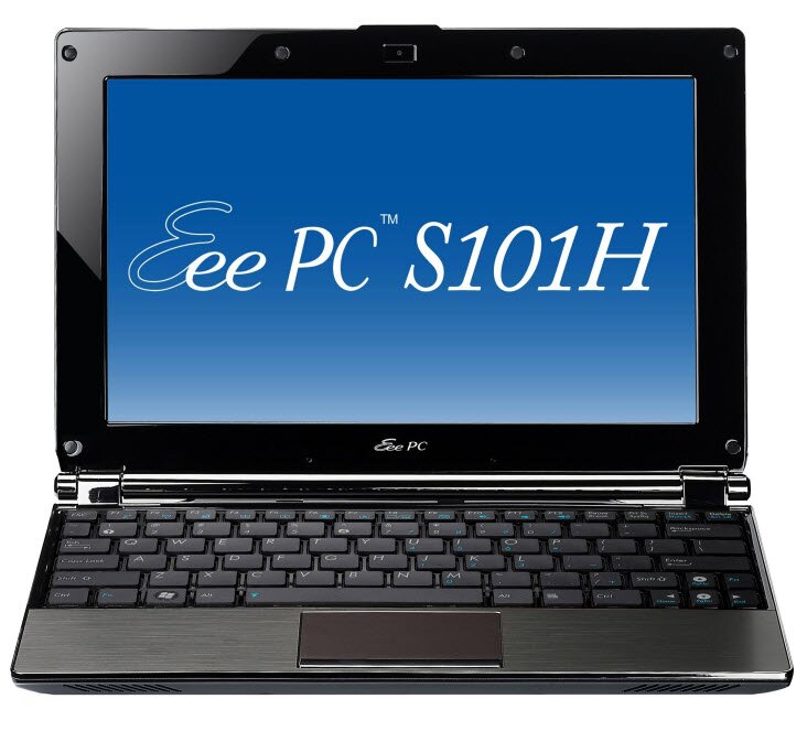 ASUS EEE S101H is powered by Intel Atom N270 1.6 GHz Processor, 10.2 inch WXGA with 1280×768 resolution, 32GB Flash Memory Storage, 1GB of RAM.