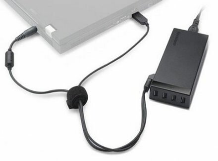 The Lenovo 65W AC Adapter with USB Hub combines an AC adapter with a USB hub for your peripherals. This device has three USB ports for data transfer and charging capability, while a fourth dedicated power port charges devices, such as many mobile phones.