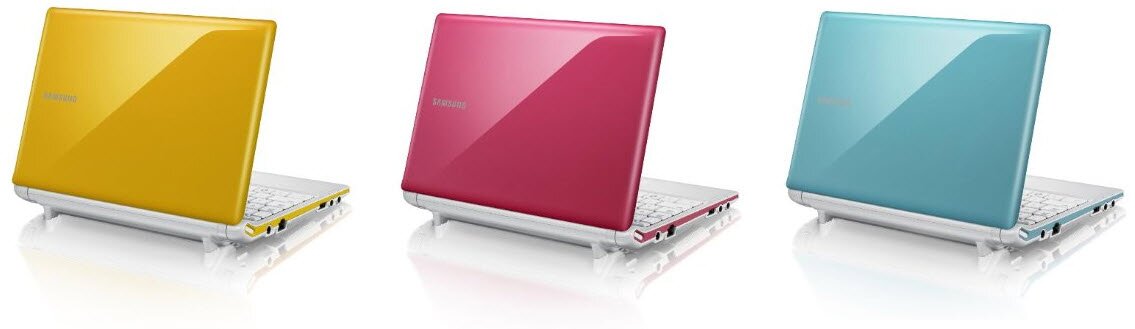 The Samsung N150 Corby netbook includes three different colors Bermuda Blue, Flamingo Pink and Caribbean Yellow.